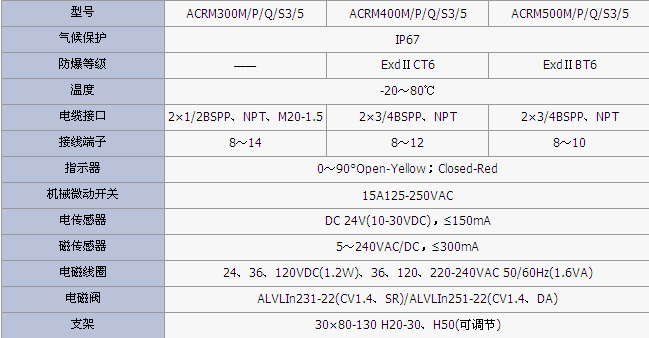 產(chǎn)品簡介:型號ACRM300M/P/Q/S3/5ACRM400M/P/Q/S3/5ACRM500M/P/Q/S3/5氣候保護IP67防爆等級&mdash...